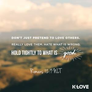 "Don’t just pretend to love others. Really love them. Hate what is wrong. Hold tightly to what is good."