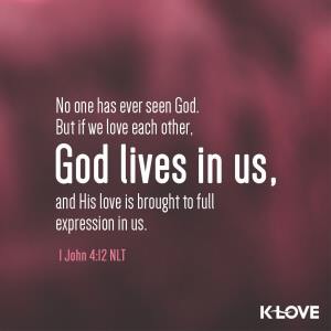 No one has ever seen God. But if we love each other, God lives in us, and his love is brought to full expression in us.