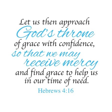 Let us then approach God’s throne of grace with confidence, so that we may receive mercy and find grace to help us in our time of need. Hebrews 4:16