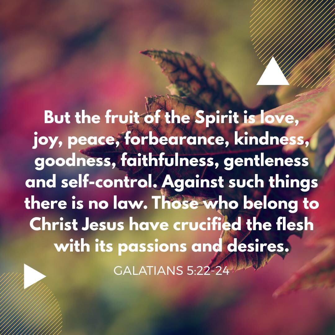 [22] But the Holy Spirit produces this kind of fruit in our lives: love, joy, peace, patience, kindness, goodness, faithfulness, [23] gentleness, and self-control. There is no law against these things! [24] Those who belong to Christ Jesus have nailed the passions and desires of their sinful nature to his cross and crucified them there.
