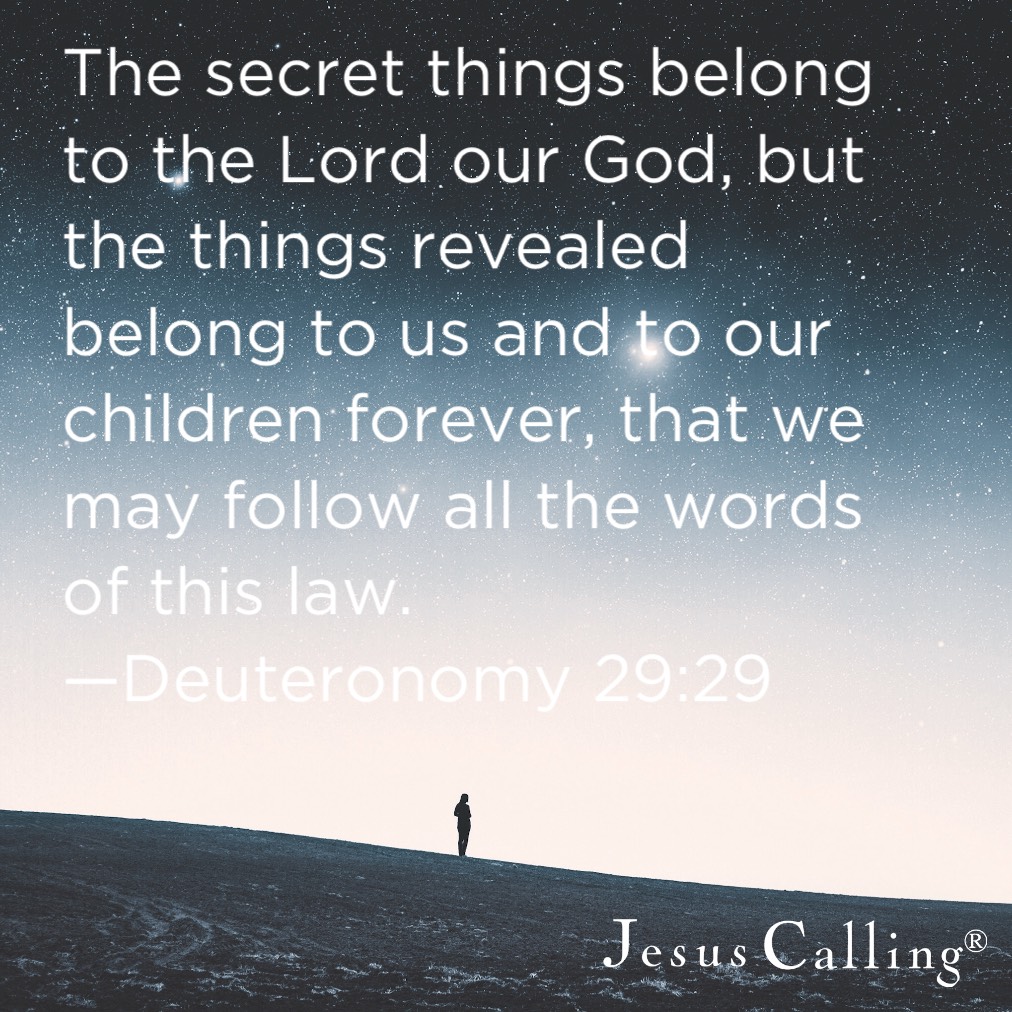 The secret things belong to the Lord our God, but the things revealed belong to us and to our children forever, that we may follow all the words of this law. – Deuteronomy 29:29