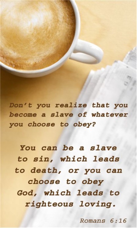Don’t you realize that you become the slave of whatever you choose to obey? You can be a slave to sin, which leads to death, or you can choose to obey God, which leads to righteous living.