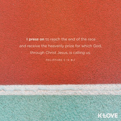 I press on to reach the end of the race and receive the heavenly prize for which God, through Christ Jesus, is calling us.