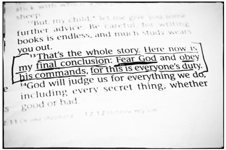 That’s the whole story. Here now is my final conclusion: Fear God and obey his commands, for this is everyone’s duty.