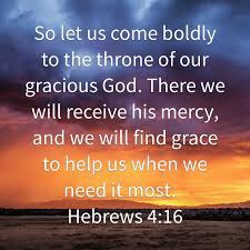 So let us come boldly to the throne of our gracious God. There we will receive his mercy, and we will find grace to help us when we need it most. Hebrews 4:16 NLT