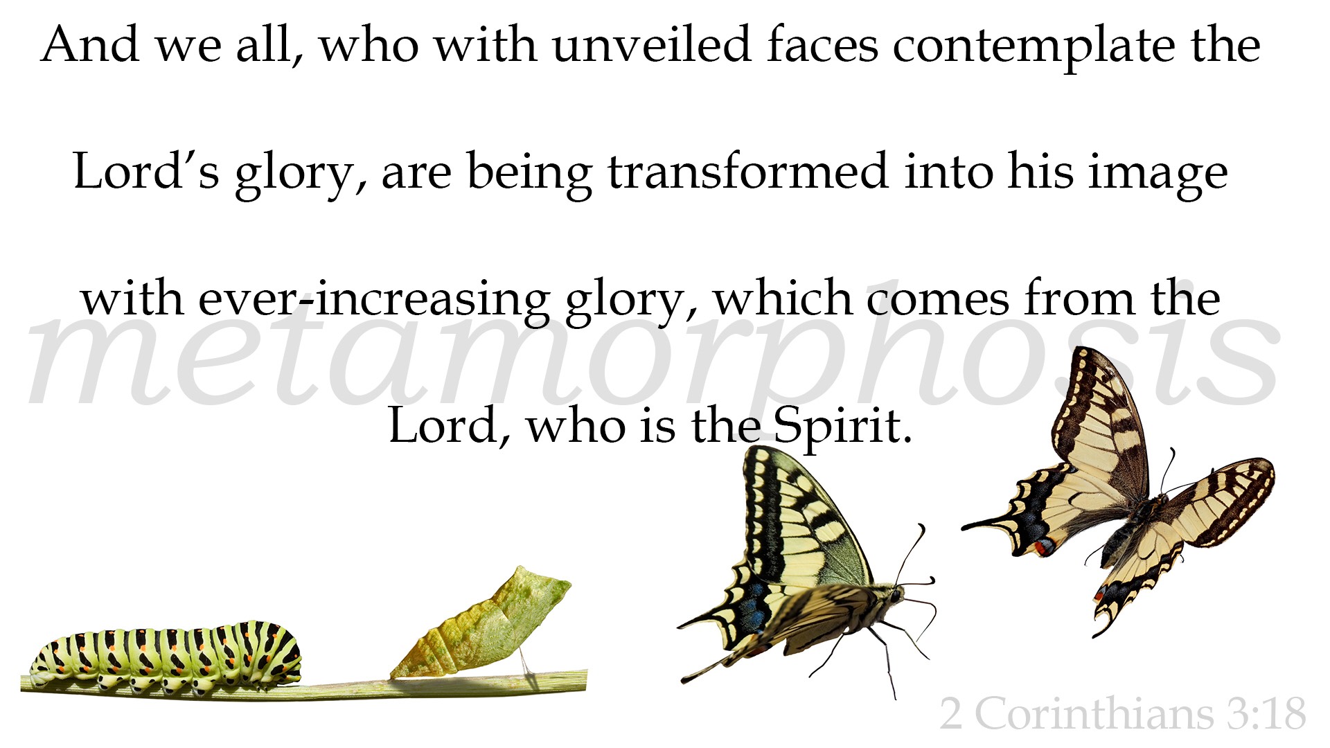 And we all, who with unveiled faces contemplate the Lord’s glory, are being transformed into his image with ever-increasing glory, which comes from the Lord, who is the Spirit. 2 Corinthians 3:18 (NIV)