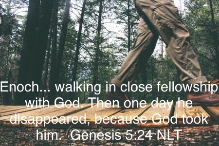 Enoch… walking in close fellowship with God. Then one day he disappeared, because God took him. Genesis 5:24 NLT
