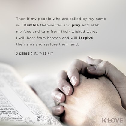 Then if my people who are called by my name will humble themselves and pray and seek my face and turn from their wicked ways, I will hear from heaven and will forgive their sins and restore their land.