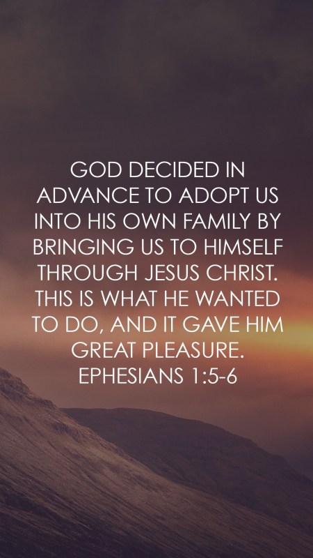 God decided in advance to adopt us into his own family by bringing us to himself through Jesus Christ. This is what he wanted to do, and it gave him great pleasure.