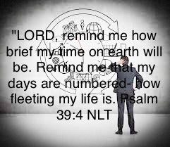 "LORD, remind me how brief my time on earth will be. Remind me that my days are numbered- how fleeting my life is.