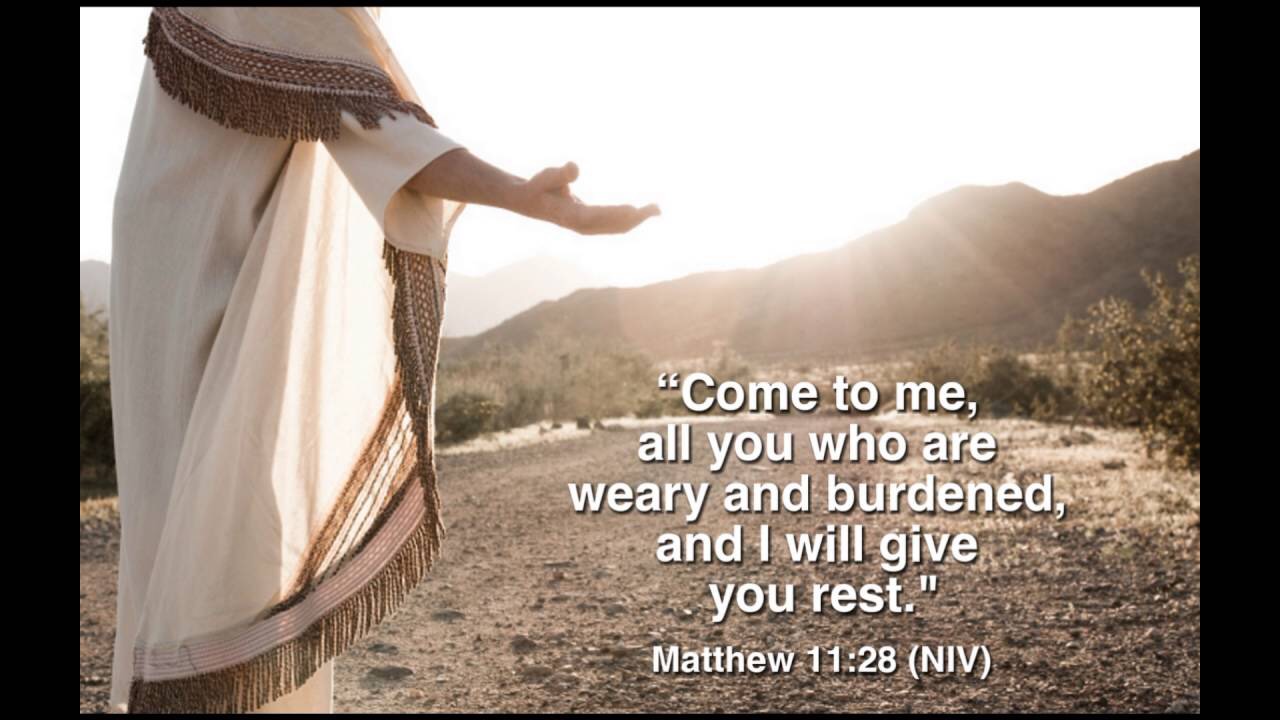 Then Jesus said, "Come to me, all of you who are weary and carry heavy burdens, and I will give you rest.