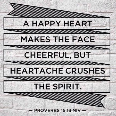 “A happy heart makes the face cheerful, but heartache crushes the spirit.”