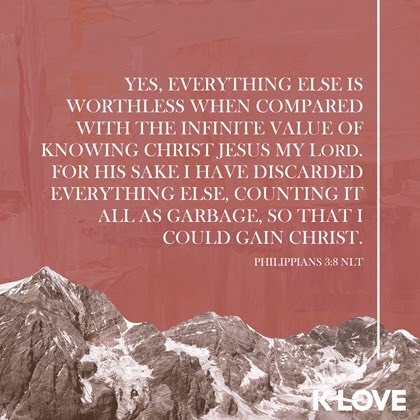 Yes, everything else is worthless when compared with the infinite value of knowing Christ Jesus my Lord. For his sake I have discarded everything else, counting it all as garbage, so that I could gain Christ.