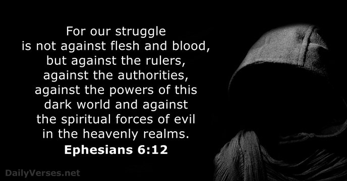 …we are not fighting against flesh-and-blood enemies, but against evil rulers and authorities of the unseen world, against mighty powers in this dark world, and against evil spirits in the heavenly places.