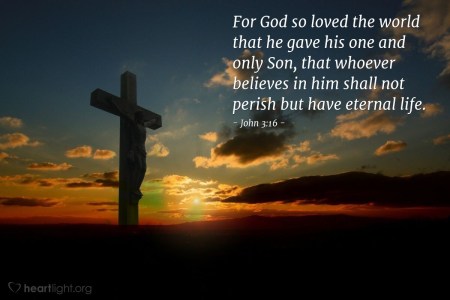 "For this is how God loved the world: He gave his one and only Son, so that everyone who believes in him will not perish but have eternal life.