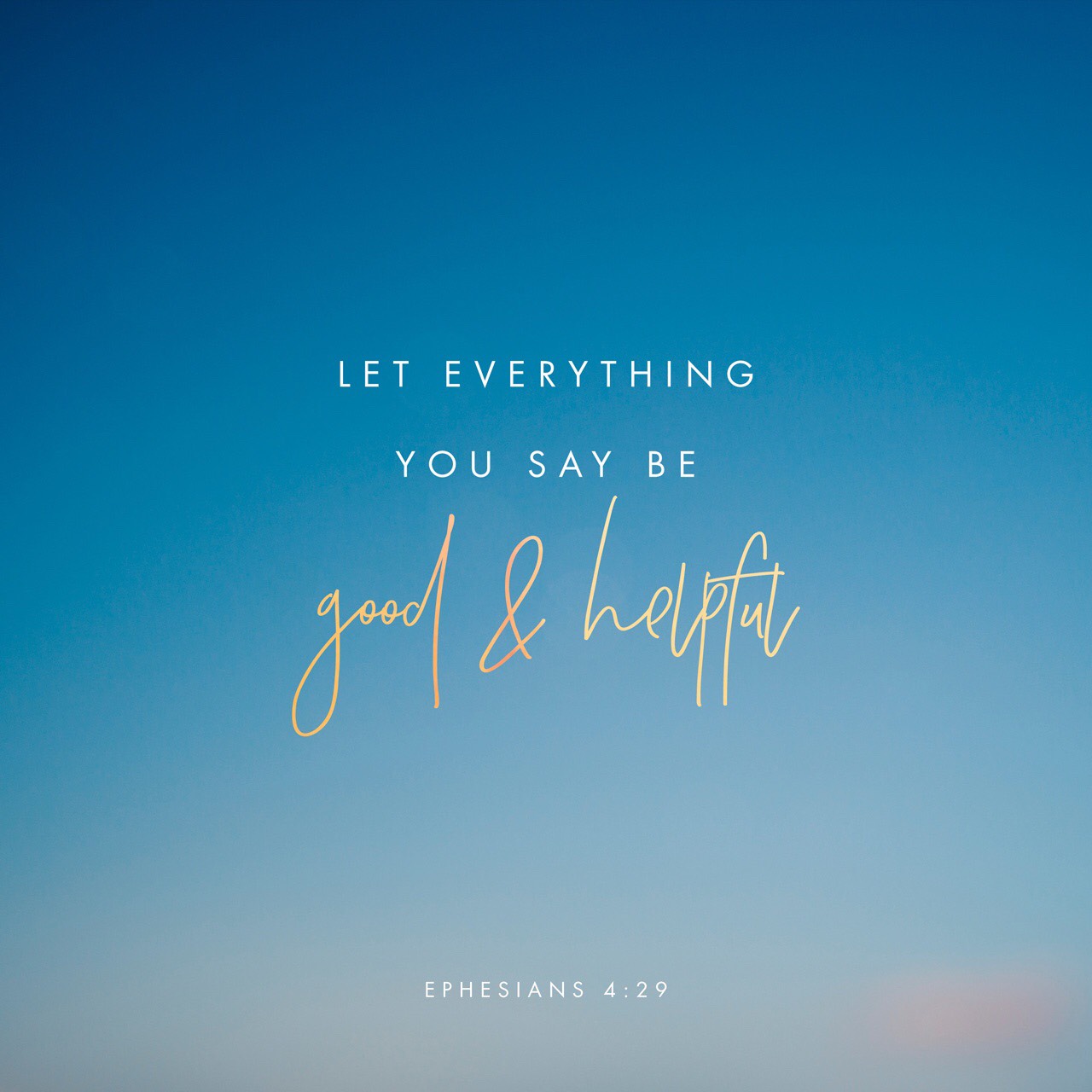 Do not let any unwholesome talk come out of your mouths, but only what is helpful for building others up according to their needs, that it may benefit those who listen.