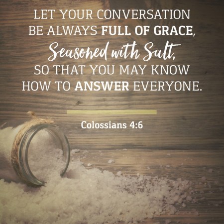 “Let your conversation be always full of grace, seasoned with salt, so that you may know how to answer everyone.” Colossians 4:6 (NIV)