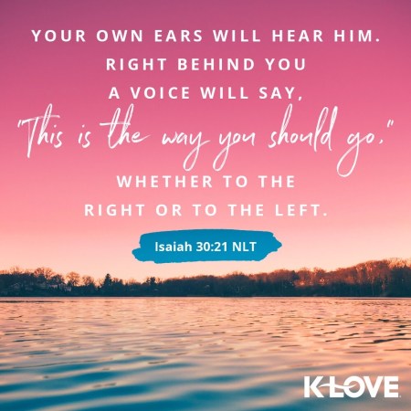 Your own ears will hear him. Right behind you a voice will say, "This is the way you should go," whether to the right or to the left.