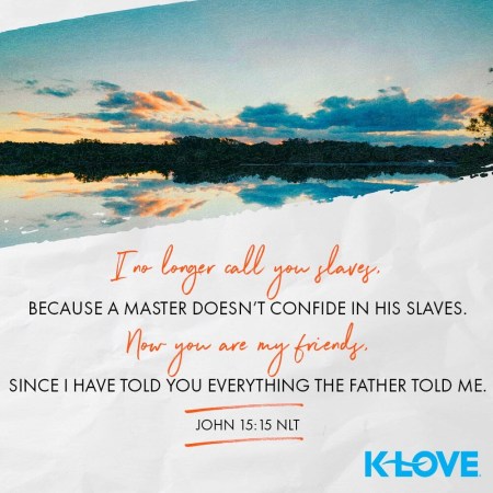I no longer call you slaves, because a master doesn’t confide in his slaves. Now you are my friends, since I have told you everything the Father told me.