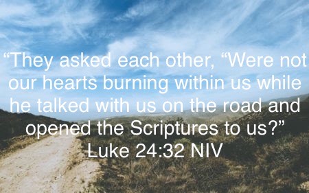 “They asked each other, “Were not our hearts burning within us while he talked with us on the road and opened the Scriptures to us?”