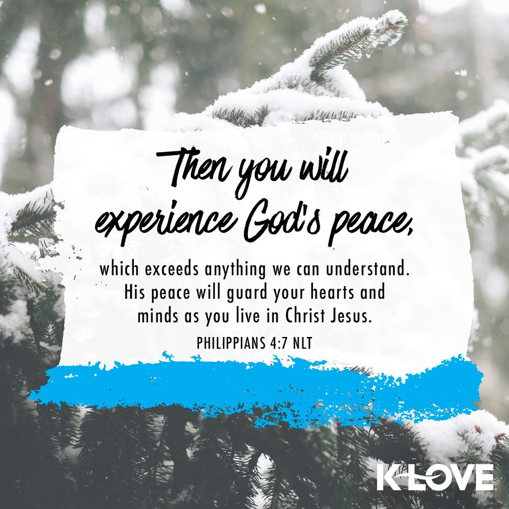 Then you will experience God’s peace, which exceeds anything we can understand. His peace will guard your hearts and minds as you live in Christ Jesus.