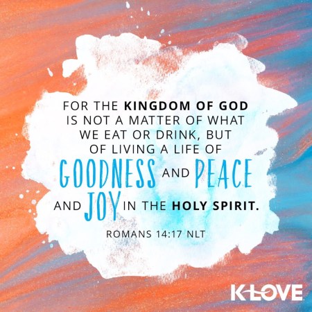 For the Kingdom of God is not a matter of what we eat or drink, but of living a life of goodness and peace and joy in the Holy Spirit.