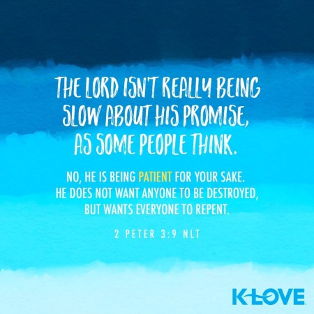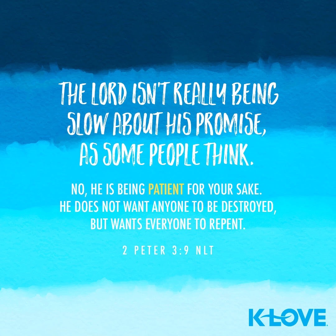 The Lord isn’t really being slow about his promise, as some people think. No, he is being patient for your sake. He does not want anyone to be destroyed, but wants everyone to repent.
