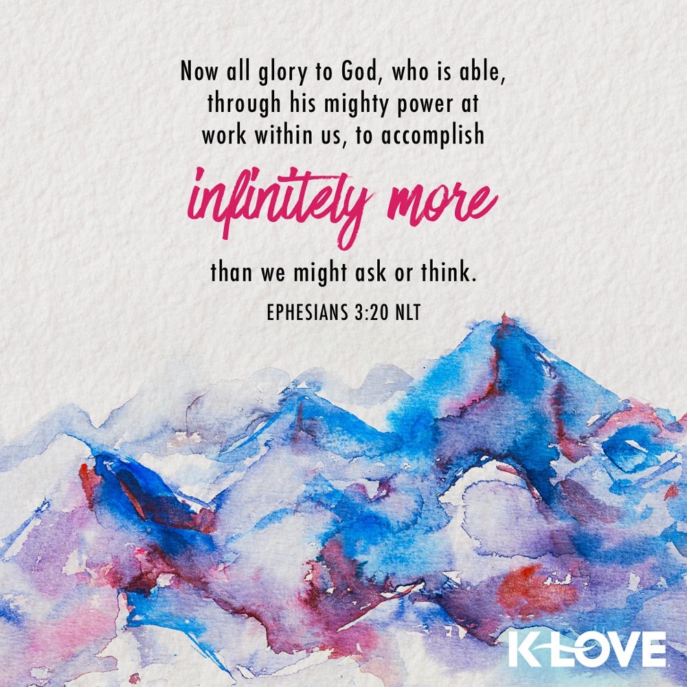 Now all glory to God, who is able, through his mighty power at work within us, to accomplish infinitely more than we might ask or think.