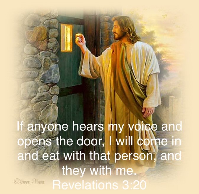 If anyone hears my voice and opens the door, I will come in and eat with that person, and they with me.