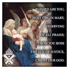 Blessed are you, holy Virgin Mary, deserving of all praise; from you rose the sun of Justice, Christ our God.