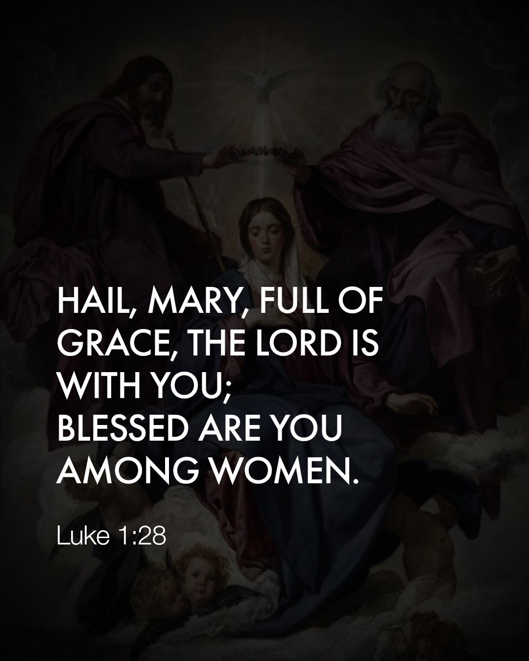 Hail Mary full of Grace, the Lord is with thee. Blessed are thou among women and blessed is the fruit of thy womb Jesus.