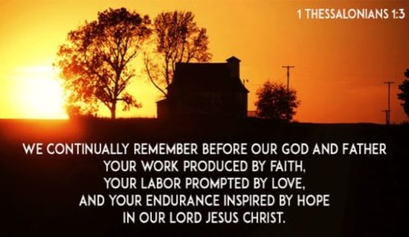 Today’s Action Item: Work at your faith, labor in your love, and be steadfast in your hope.