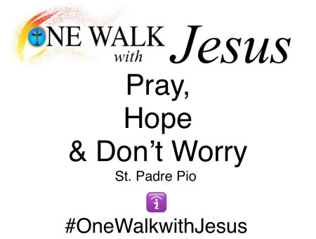 Today Saint Padre Pio’s words ring out loud… Pray, Hope and Don’t Worry. To be that close to You. To know that I have purified my mind, body and soul making You my top priority. One Walk with Jesus, this is my desire, my goal.