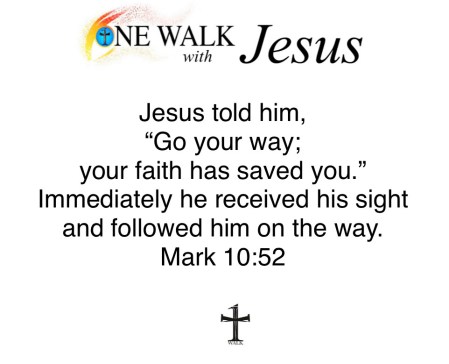 Jesus told him, “Go your way; your faith has saved you.” Immediately he received his sight and followed him on the way.