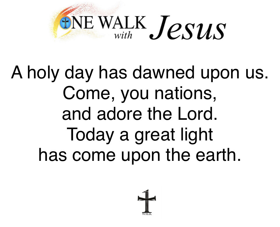 A holy day has dawned upon us. Come, you nations, and adore the Lord. Today a great light has come upon the earth.