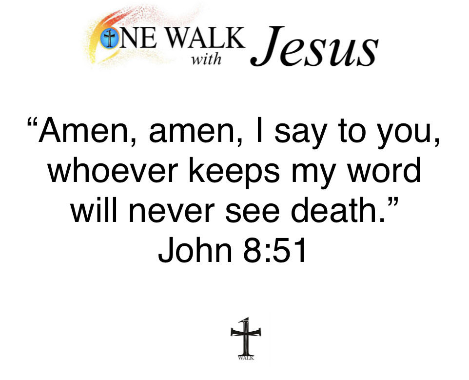 In today’s Gospel, Christ promises that those who follow him will not suffer a spiritual death. They will remain in communion with God, the source of all life. When the Jews ask Christ how he can say such things, he reveals his divine identity. He is the I AM, and he fulfills the covenant he made with Abraham, our father in faith.