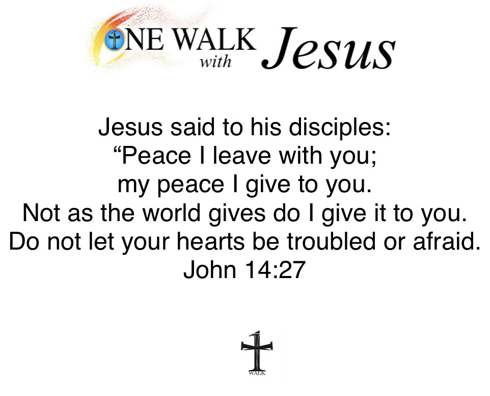 Jesus said to his disciples: “Peace I leave with you; my peace I give to you. Not as the world gives do I give it to you. Do not let your hearts be troubled or afraid. You heard me tell you, ‘I am going away and I will come back to you.’ If you loved me, you would rejoice that I am going to the Father; for the Father is greater than I. And now I have told you this before it happens, so that when it happens you may believe. I will no longer speak much with you, for the ruler of the world is coming. He has no power over me, but the world must know that I love the Father and that I do just as the Father has commanded me.”