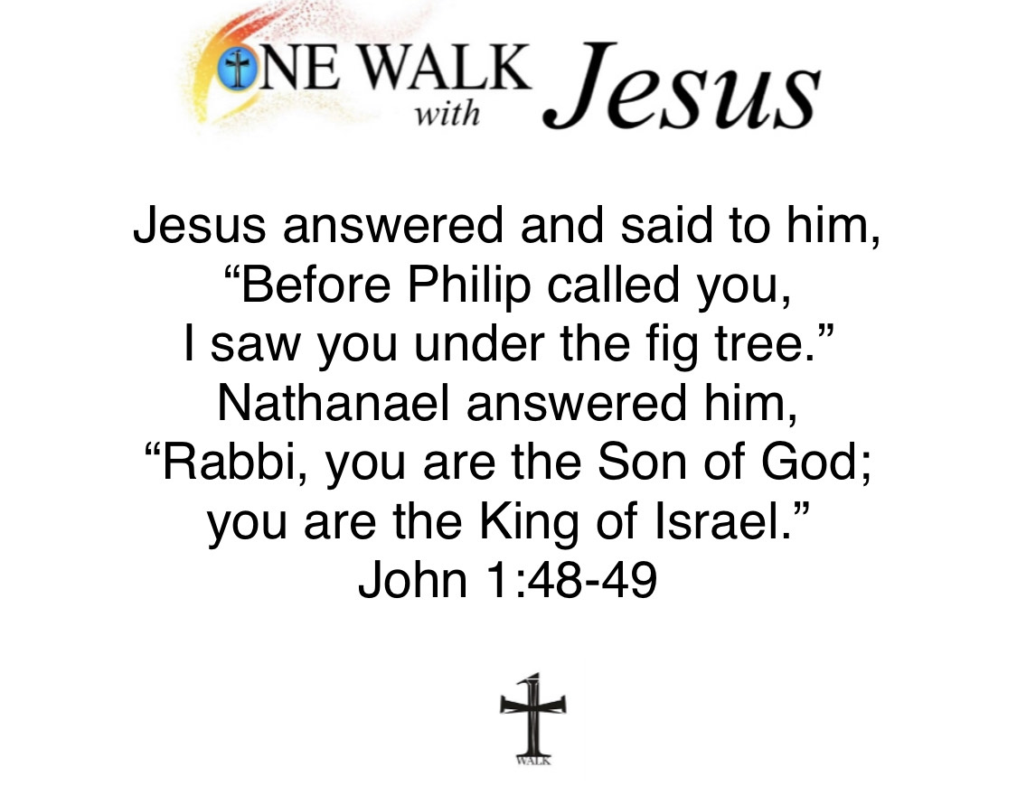 Philip found Nathanael and told him, “We have found the one about whom Moses wrote in the law, and also the prophets, Jesus son of Joseph, from Nazareth.” But Nathanael said to him, “Can anything good come from Nazareth?” Philip said to him, “Come and see.” Jesus saw Nathanael coming toward him and said of him, “Here is a true child of Israel. There is no duplicity in him.” Nathanael said to him, “How do you know me?” Jesus answered and said to him, “Before Philip called you, I saw you under the fig tree.” Nathanael answered him, “Rabbi, you are the Son of God; you are the King of Israel.” Jesus answered and said to him, “Do you believe because I told you that I saw you under the fig tree? You will see greater things than this.” And he said to him, “Amen, amen, I say to you, you will see heaven opened and the angels of God ascending and descending on the Son of Man.”