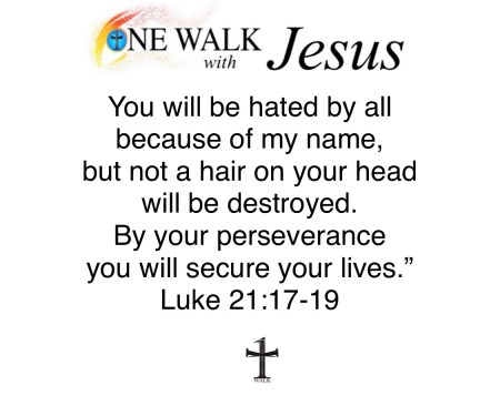 Jesus said to the crowd: “They will seize and persecute you, they will hand you over to the synagogues and to prisons, and they will have you led before kings and governors because of my name. It will lead to your giving testimony. Remember, you are not to prepare your defense beforehand, for I myself shall give you a wisdom in speaking that all your adversaries will be powerless to resist or refute. You will even be handed over by parents, brothers, relatives, and friends, and they will put some of you to death. You will be hated by all because of my name, but not a hair on your head will be destroyed. By your perseverance you will secure your lives.”