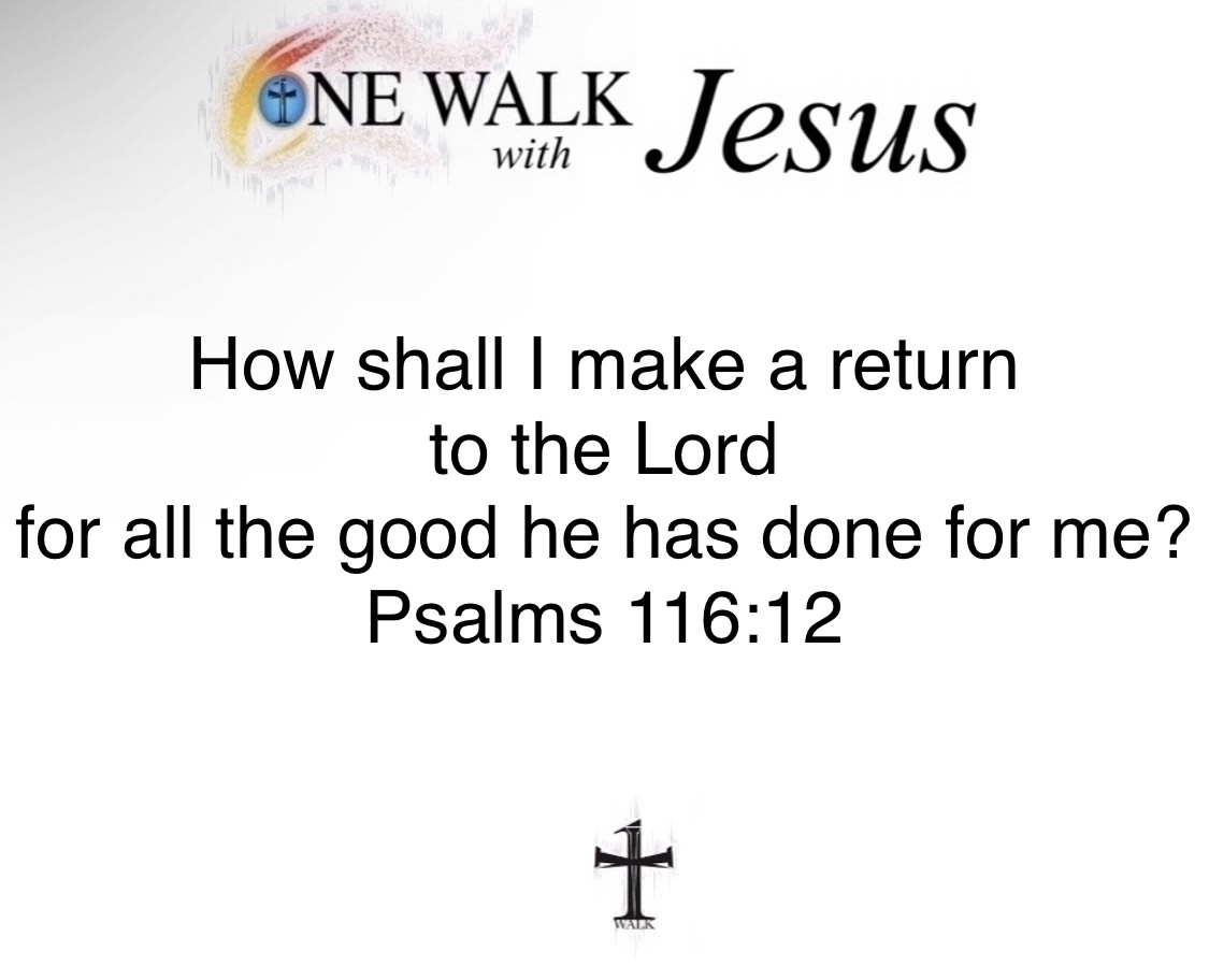 How shall I make a return to the LORD for all the good he has done for me?The cup of salvation I will take up, and I will call upon the name of the LORD