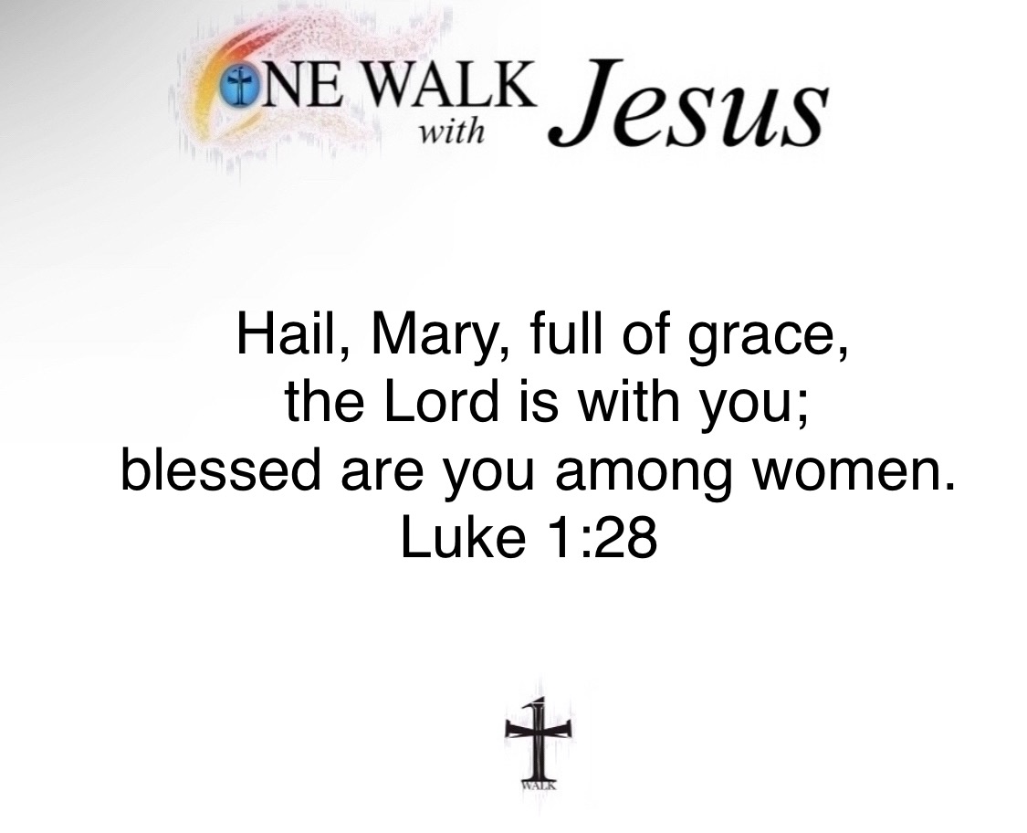 Hail Mary full of Grace, the Lord is with thee. Blessed are thou among women and blessed is the fruit of thy womb Jesus.