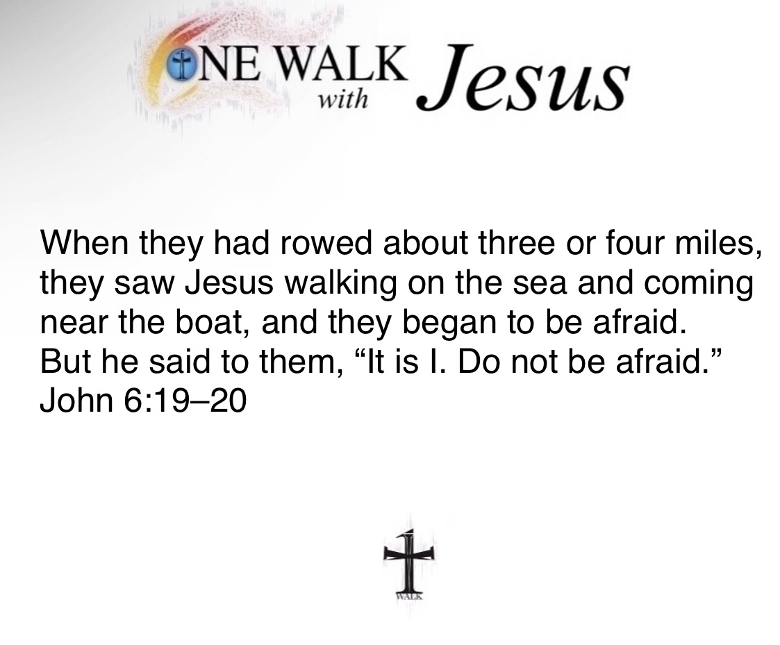 When they had rowed about three or four miles, they saw Jesus walking on the sea and coming near the boat, and they began to be afraid. But he said to them, “It is I. Do not be afraid.”